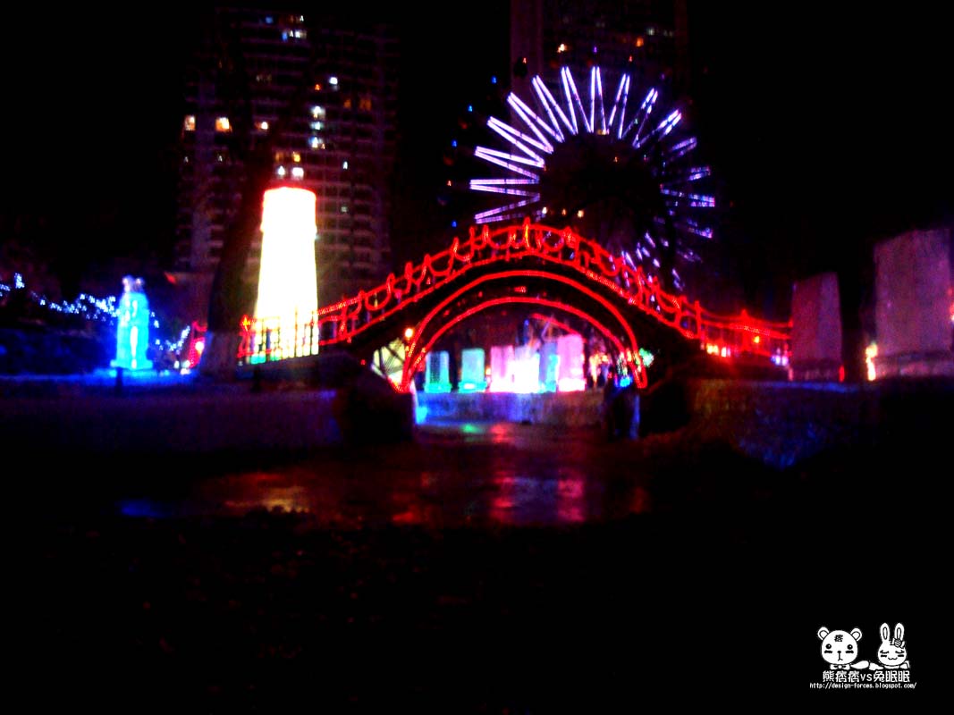 在時光隧道的右手邊,抬頭一看就是冰雕摩天輪!這個摩天輪並不是裝飾品,而是可以去搭乘的,只是排隊排很長…那時候好像排了30幾分鐘吧?