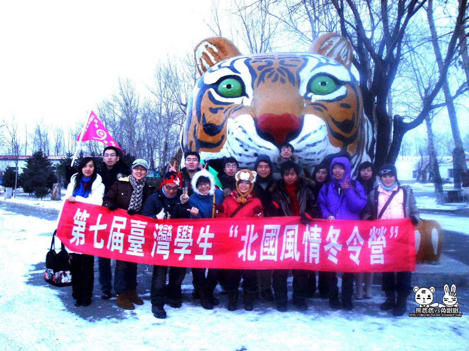 園區內,還有藝品屋,裡面擺滿50種的與老虎相關的產品,不論是娃娃或者明信片,都可以看到呢,路旁還有一系列的老虎大公仔,連交通安全虎都跑出來客串,吸引不少遊客拍照,左下的圖則是這次兩岸的交流學子(熊痞痞很想大家~)。