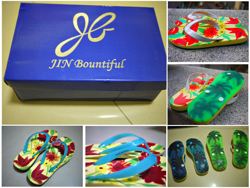 其實不知道為何,看了這兩雙鞋子時,默默的就想替他們補上這個故事,有點像是牛郎織女的感覺,上面這張藍色耳帶的人字拖,就是故事中的陽光幻彩精靈,此耳帶在受到不同強度的紫外線照射後,色澤上會產生一些小變化。