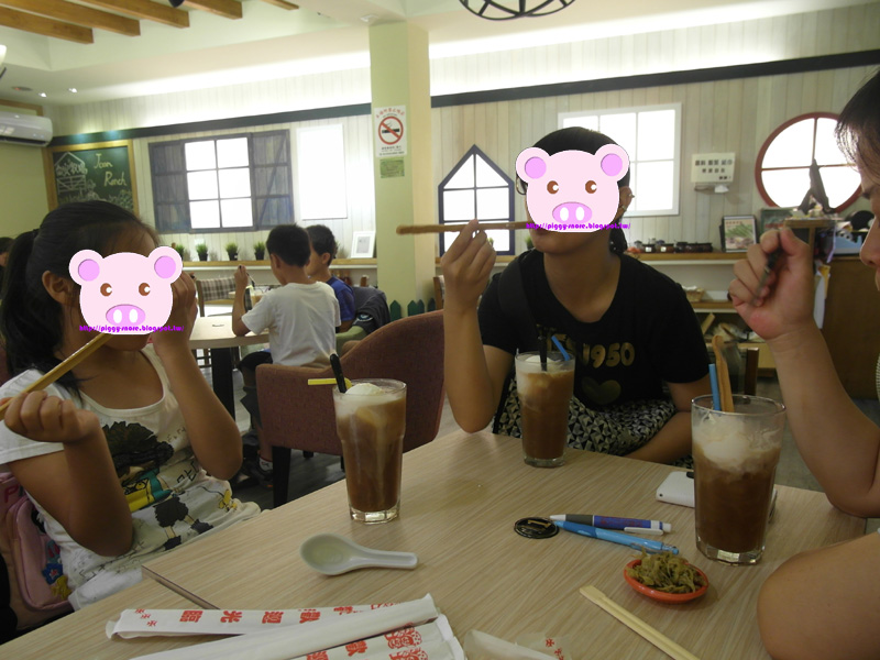 這張是大家在啃牛奶棒的模樣~因為真的吃得太忘我了,於是弄了豬頭標誌:)),不過可以看得出來牛奶棒真的很長:))