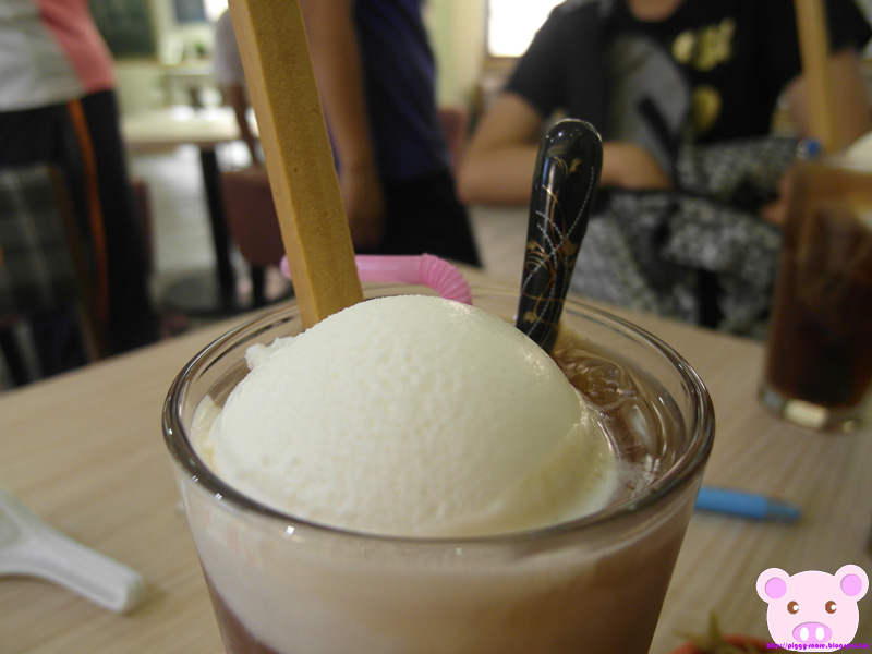 去到喬安牧場每桌必點豬齁齁的大推薦-”漂浮紅茶”$70(點餐可享半價,超划算的~), 別看這杯不起眼,他的牛奶棒足足超過30公分,吃起來不甜不膩略帶牛奶香,冰淇淋更是一絕~牛奶冰淇淋濃厚的味道跟市面上販售的盒裝冰淇淋根本就不能比較,整體味道超融洽~偷偷告訴大家豬齁齁在喝的時候並不會急著把冰淇淋融開,先單喝一口紅茶,吃一口冰淇淋,等過一會兒牛奶棒泡軟一些再咬一口牛奶棒,味道層次會超乎你意料之外的幸福♥