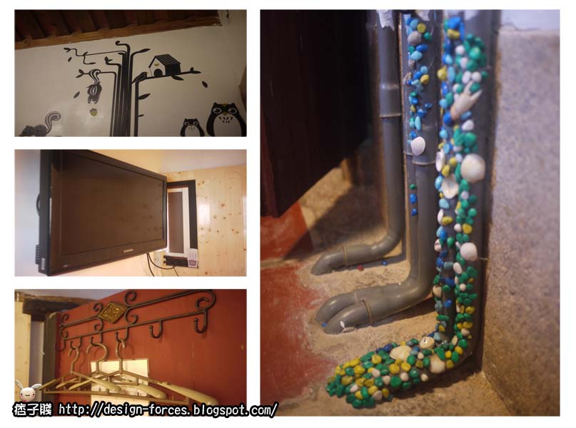 這間民宿讓賤賤有種處處都是驚喜的感覺,在滾來滾去的同時,發現牆壁上有貓頭鷹的藝術壁貼,連水管上,還用彩繪石頭進行裝飾,真是可愛呀!房間的液晶電視是32吋的,有提供無線上網。