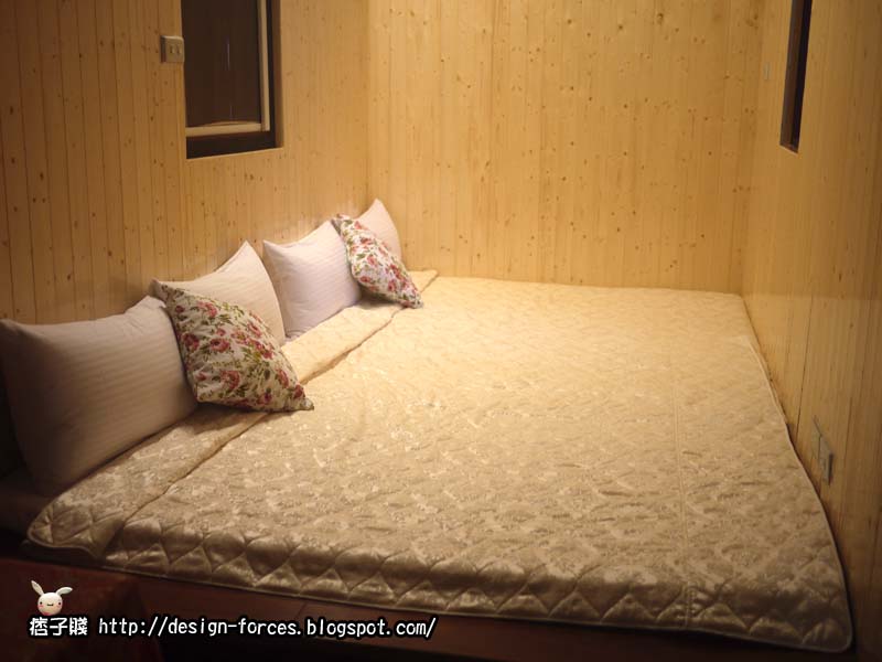 採菊是4人套房,平時一晚要價2200,旁邊的裝潢都是採用木質的建材,有種古色古香的味道,放完行李後,賤賤就忍不住的在床上滾來滾去=W=!超舒服的~~~