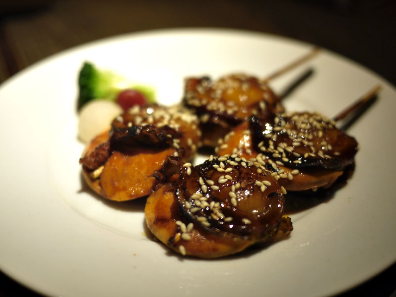 帆立貝串烤,裡面共有兩串4顆,味道略重,加上芝麻稍微提香,口感還不錯。