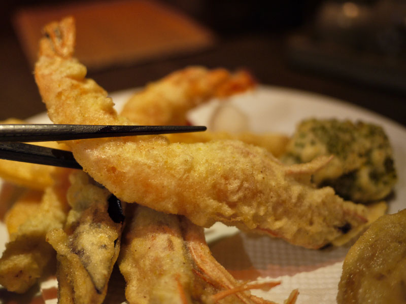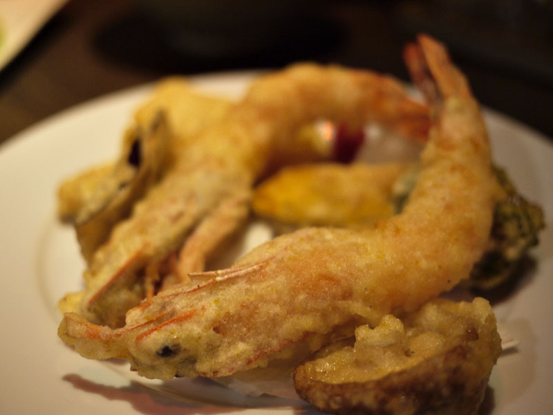 蝦子蠻大隻的,肉質雖然炸過卻不乾,吃的時候不需要剝殼,因為廚師已經幫您處理好了,直接咬開就可以了(除了頭尾),裡面還有地瓜那些的裝飾,也都不錯。