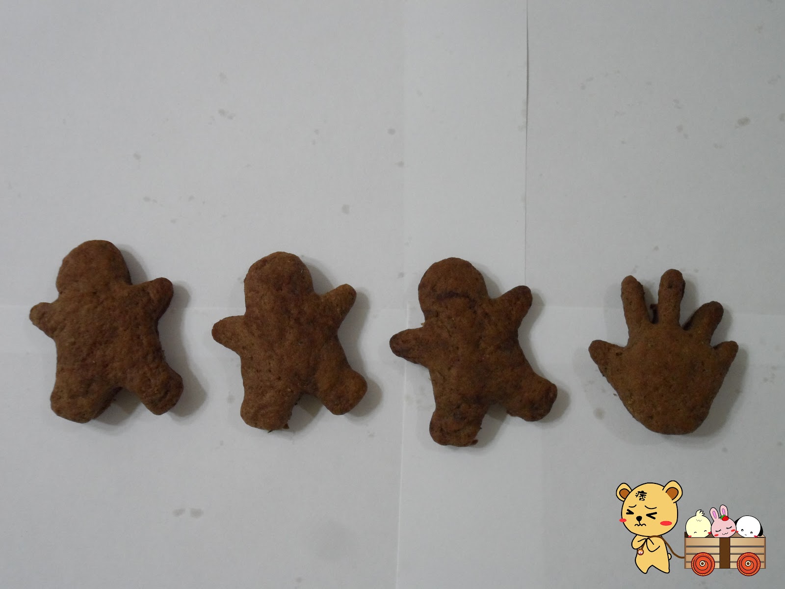 自己做餅乾有一個好處是,想捏什麼造型就捏什麼造型,飛飛另外烤了其他的圖案,還可以變成看圖說故事呢!!