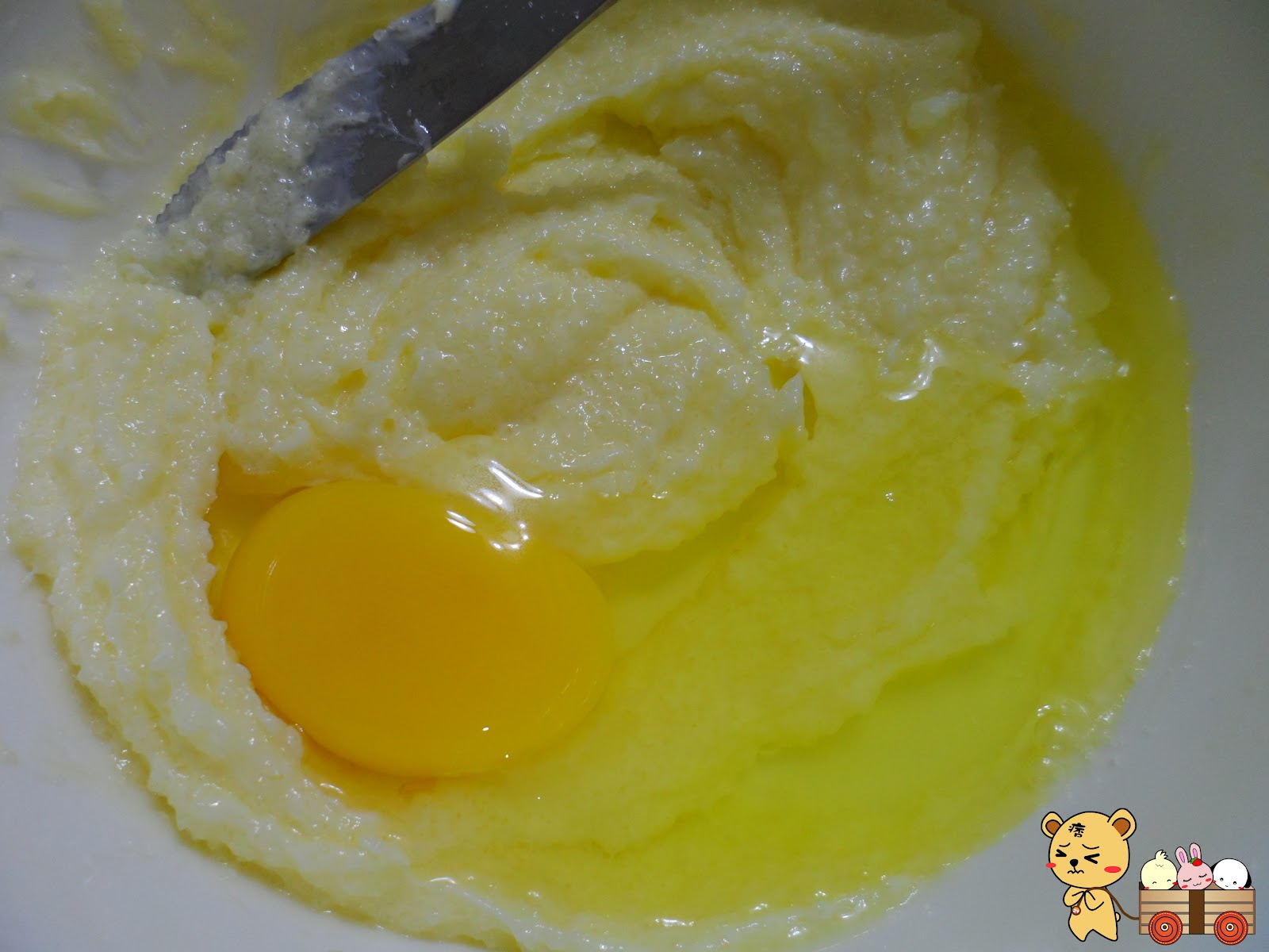 加入一顆雞蛋後,繼續攪拌之混合均勻。