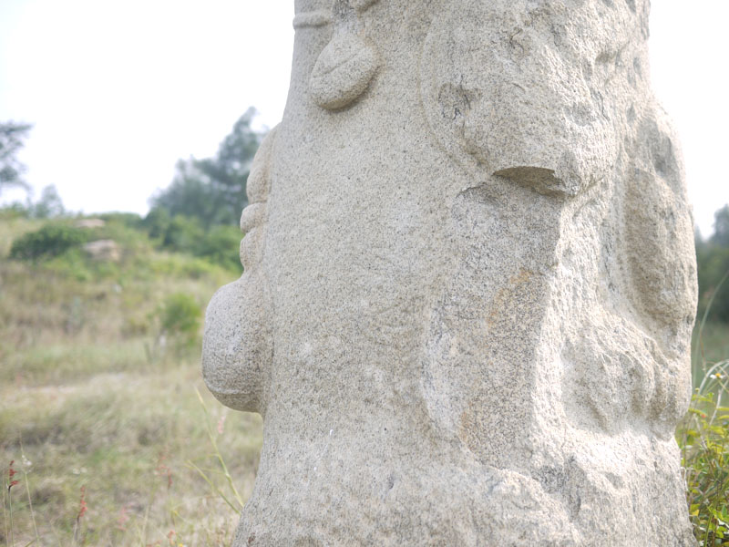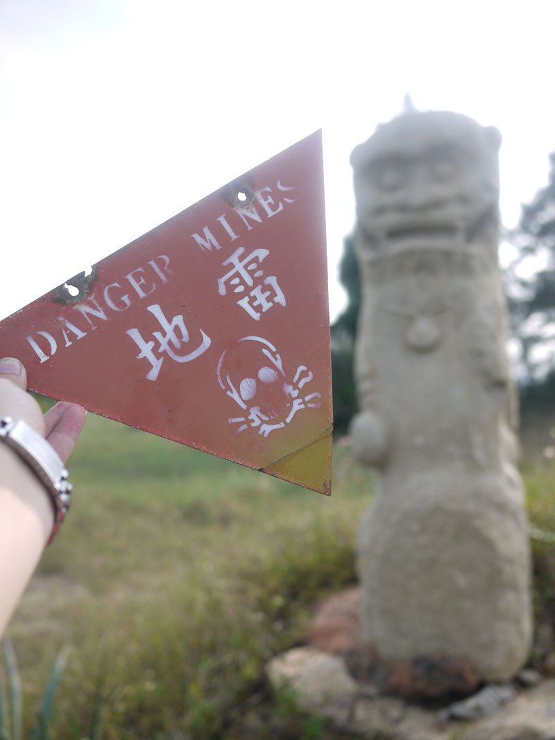 雷區風獅爺。佇立在金門的大地上,孤獨寂寞的望著沿海,在地雷層層包圍的日子中,無人祭拜、無人陪伴,像英雄般的手護著我們。