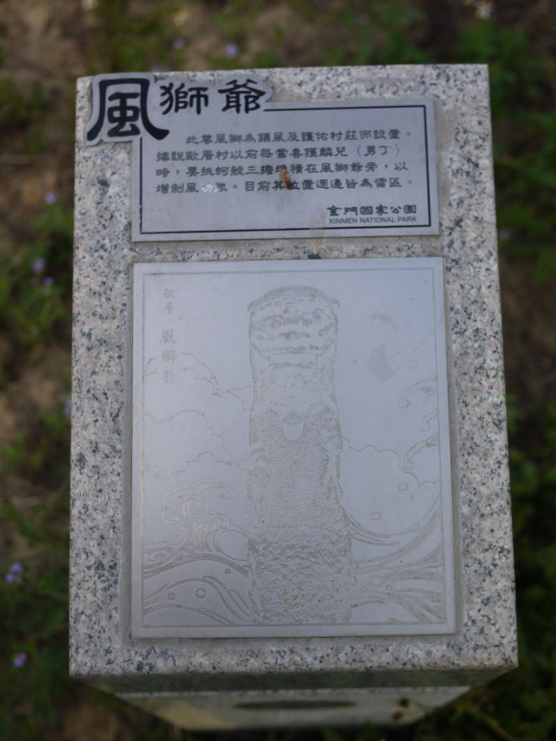 目前這尊風獅爺附近的地雷,已經被排除完畢了,入口處還有金門國家公園放置的石塊簡介,上面有一些關於此風獅爺的介紹。
