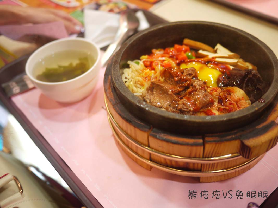 實際吃下來的感覺,口味偏重,味道還蠻香的,但飯給的太少,以食量來看,比較適合兔眠眠一人吃,如果是熊來吃可能會餓死吧…哈哈,雖然還沒有吃到其他主餐,但熊的直覺認為…來這邊因該要點蛋包飯系列的會比較好,木桶拌飯就普普通通囉~。