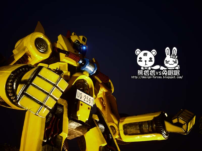 而這,就是大黃蜂暫居的家。哇!栩栩如生的外貌下,總是吸引遊客們的目光,到了晚上時,大黃蜂的右眼還會發出閃亮的光芒,十分酷炫。