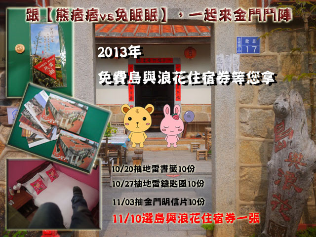 *11/10號抽2013年島與浪花住宿券一張