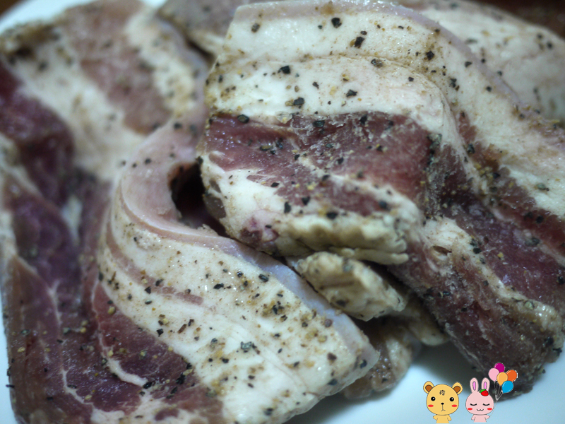 才將優良的豬五花加以醃漬的,
