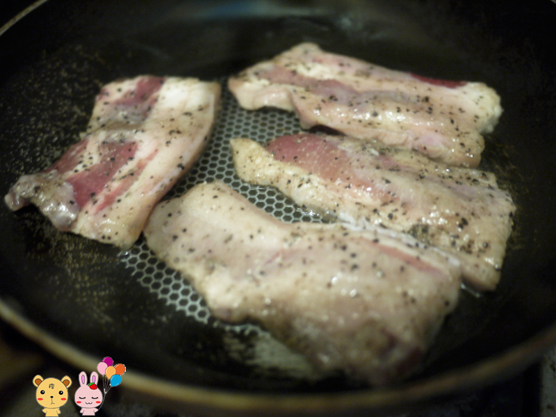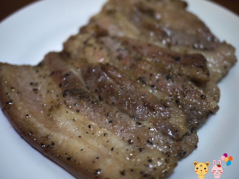 因為店家都幫你把調味的部份解決了,所以只要家裡有鍋子,就可以直接拿上來煎,超級懶人的做法阿!一般而言,由於鹹豬肉也會出油,建議油不要放太多,只要不黏鍋就可以了!煎的時候用小火在雙面各煎3分鐘,即可拿起,若想吃脆脆的口感,則可以放久一點。