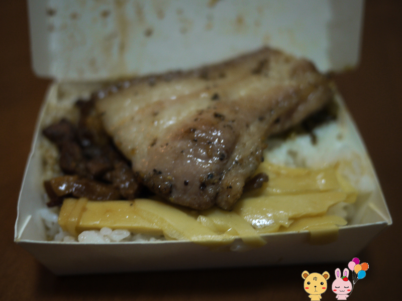 再來要介紹的是豬排,肉質超嫩!這個就沒有特地加雞蛋煮,而且這個豬排有跟客家鹹豬肉一樣的香料,嗯…又是很妙的FU,他的大小蠻適合夾土司吃的。
