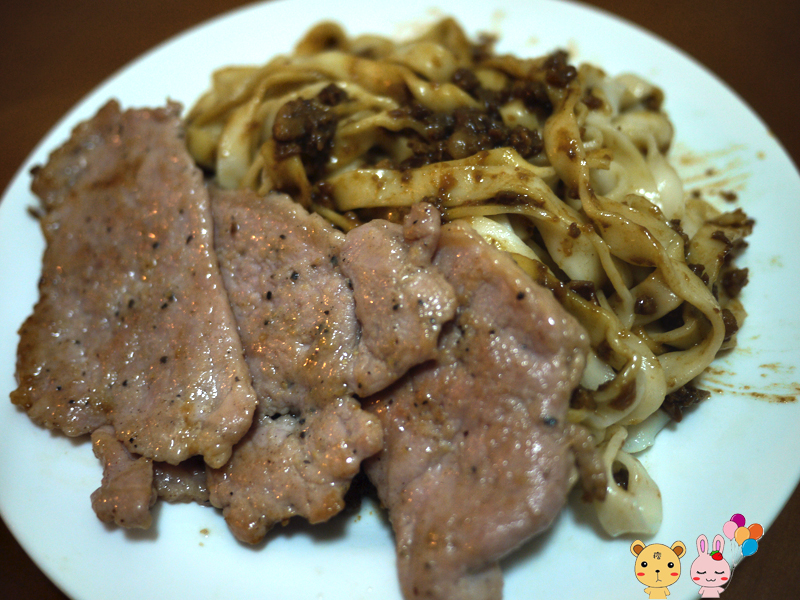 不過因為剛好沒吐司了,就把他跟肉醬麵混在一起,變成一盤超嫩豬排雜醬麵,嘿嘿有人要買嗎?一盤只要100元唷^_^。