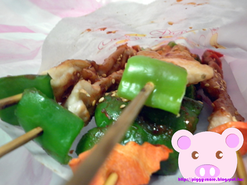 個人推薦雞肉串(圖中跟青椒串在一起的肉串~似乎有個可樂味?!挺特別的~)