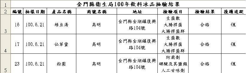 另外附上今年的抽驗結果,高明的雖然是小攤販模式 但檢驗都是合格的,可安心使用。 |