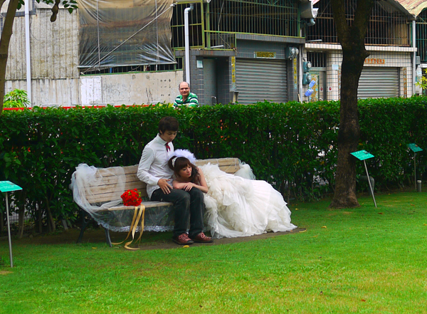 一出去,原本想要先去樹屋那,沒想到在路上看到這麼幸福的畫面-///-,一組情侶在這邊拍婚紗照耶,男得帥!女的美!德記洋行遇見愛,幸福滿滿好自在XD,希望他們能跟德記洋樓的外觀一樣,白頭偕老度一生唷︿︿,過幾天,在跟大家分享大自然鬼斧神工的安平樹屋吧,今天就讓熊小小的偷懶一下唄….各位晚安!