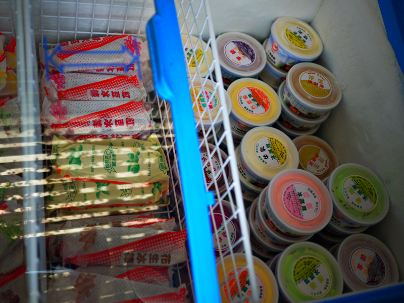 在販賣部的冰品有好幾種口味,杏仁蛋黃冰淇淋只是特別而已,店家老闆比較推薦的好像是烏梅口味吧!不過最後熊並沒有聽店家的話,反而隨便買了自己喜歡的口味。