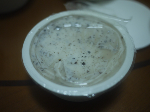口味的部分共有原味、抹茶、燕麥、芝麻、紅豆抹茶五種,每一碗打開蓋子後,裡面還有一層塑膠的,這一層並不是用撕開來的,而是用附贈的湯匙末端來刮起來,有點像是早期的中華豆花吃法,超懷念的。