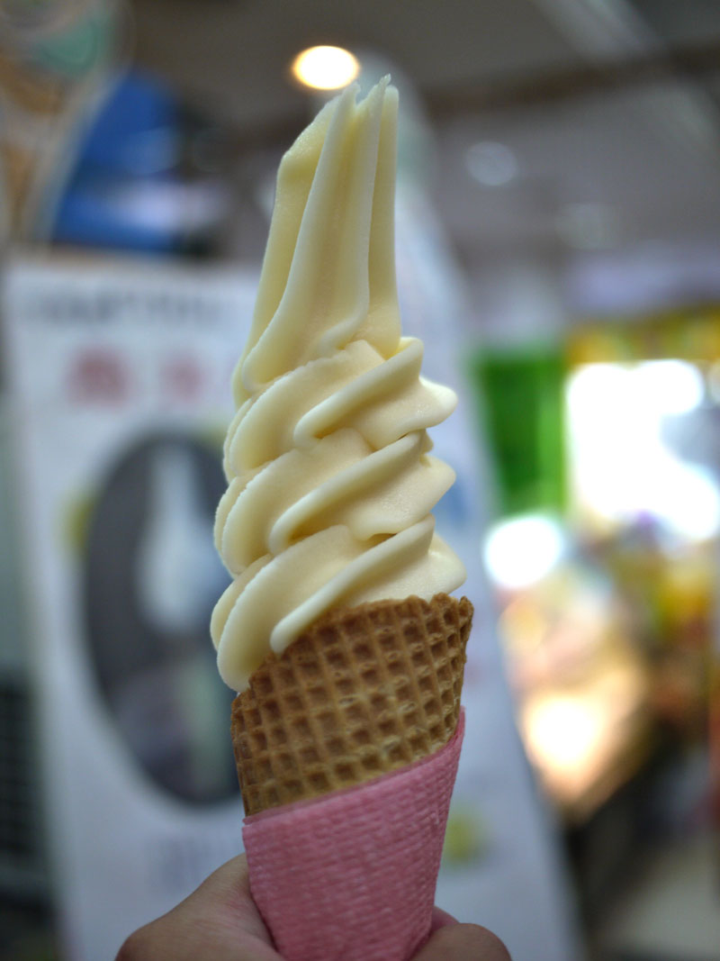 這次員工旅行的最後一站,我們來到屏東青島啤酒廠,酒廠內除了免費的啤酒暢飲外,還有付費的啤酒香腸、啤酒皮蛋,甚至連啤酒酵母發酵的霜淇淋也有在賣呢,由於啤酒霜淇淋的頭銜讓我們看了心癢癢的,最後就跑去櫃檯結帳,買了一支來品嘗看看。