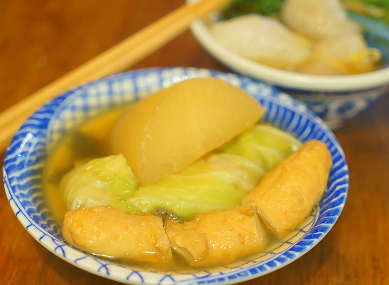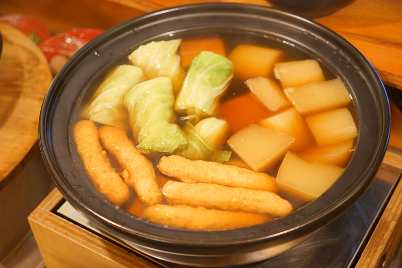 手工高麗菜捲不是一開始就下鍋的,因為放太久容易造成菜煮的爛爛的,所以要客人點好後才會放進去煮。