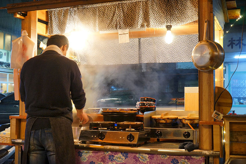 老闆在弄煎餃,終於快要可以吃了!這一道料理比較費工,如果人多時候要有等的心理準備。