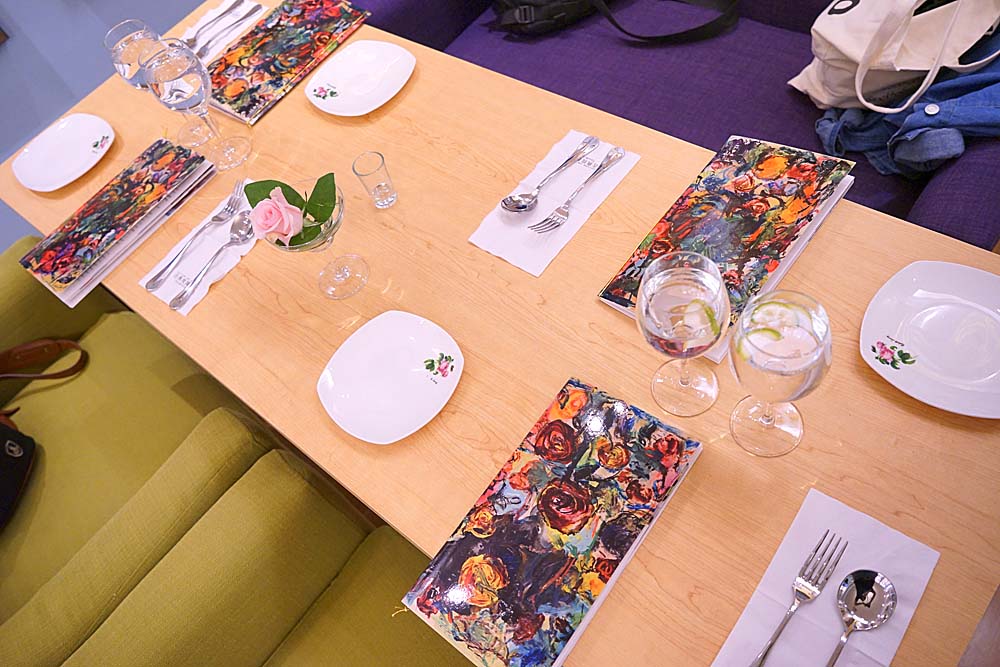 桌上還有一朵玫瑰花襯托著,而菜單的封面很有趣,有種梵谷的意境,完整菜單內容請點: