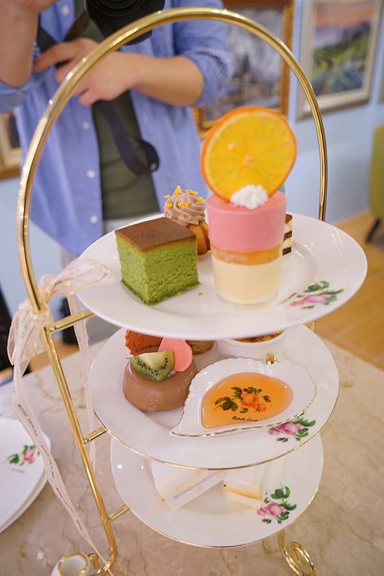 正統的英式下午茶吃法聽說是從下往上吃,鹹食的三明治我還蠻愛的,其他上面的甜點就沒吃到了,因為當天顧聊天,吃到百貨公司都要關門了,最後這個甜點來不及吃,大家就各自打包一層回家。