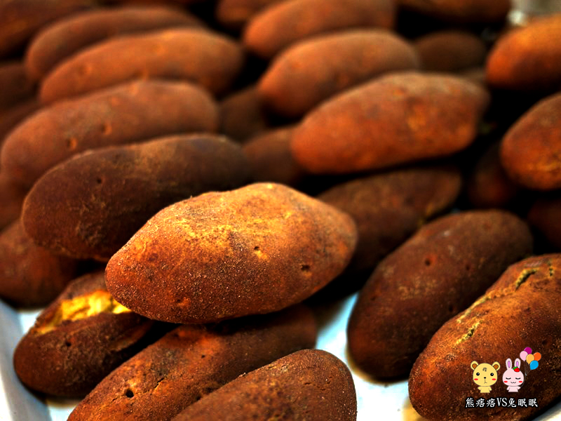 佳軒的烤地瓜麵包是一種外皮札實又不會太硬口感的麵包,外表真的跟地瓜長的很像!