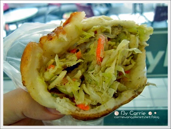 水煎包是每次必買,一顆才 $10元,中間包著梨山高麗菜、紅蘿蔔絲和冬粉,高麗菜的味道很鮮甜…