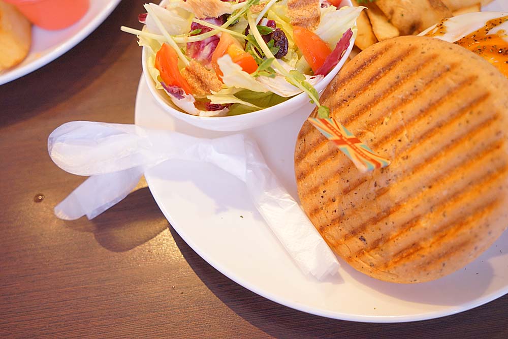 牛肉搭著起司搭著太陽蛋,這種混起來的味道,有點鹹甜甜的,雖然沒有其他兩款來的清爽,但對於重口味的我來說,算是我最愛的一款。