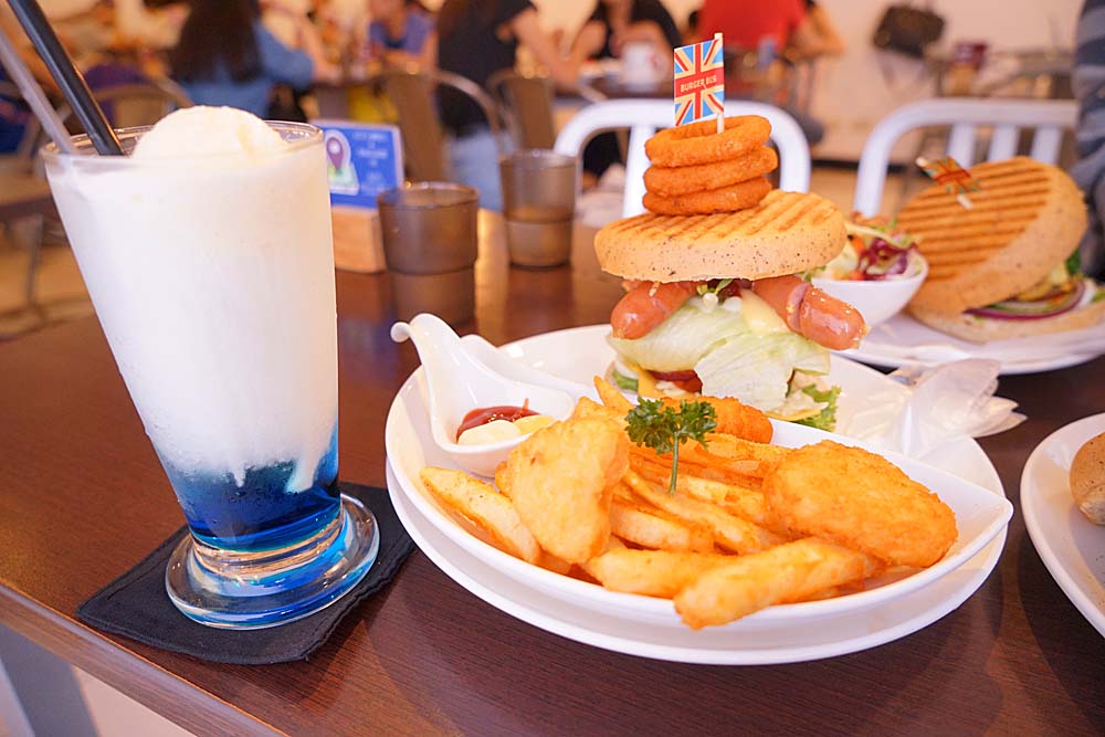 如果你是喜歡吃起司的朋友!那麼一定要建議點這份尼斯湖水怪!外面的造型老實說很奇特,第一次看到漢堡這樣搭配的,好像是取自於英國尼斯湖水怪的概念,厚度不錯也有炸物拼盤很划算。