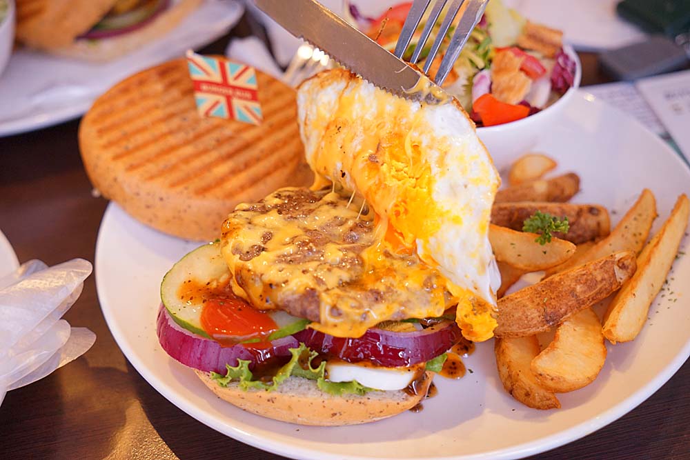 這是大英帝國日不落,也是用四盎司牛肉,不過我覺得重要特點應該是太陽蛋吧!