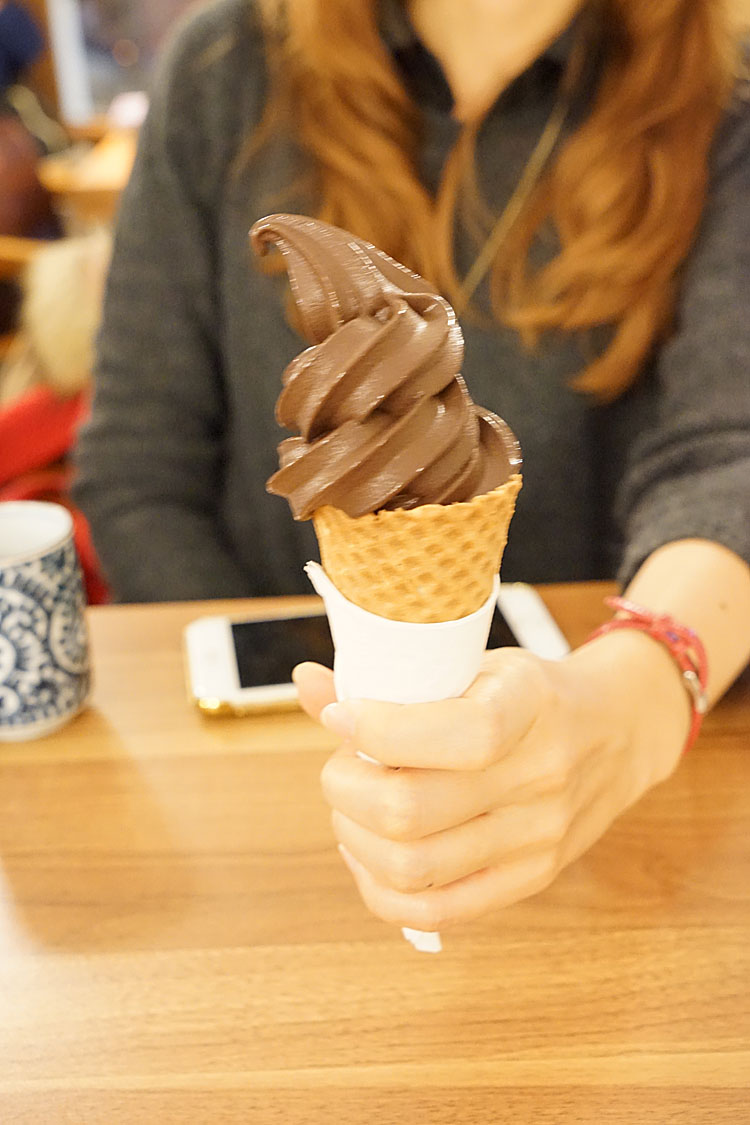 飯後必來一隻的霜淇淋,個人建議是點綜合的,一次可以吃到巧克力的甜與抹茶的苦,兩著搭起來味道更棒。
