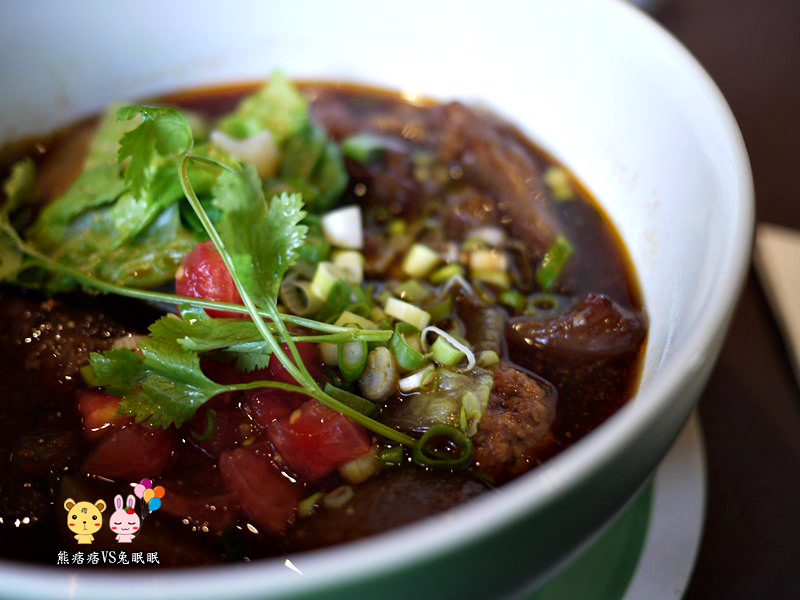 他們的湯頭是用牛骨、牛小排與一些中藥等等下去敖煮的,似乎還有些豆腐乳的感覺?還蠻好喝的,所以這碗到最後都把湯頭喝光,順便一提,這湯頭是有些小辣的唷!