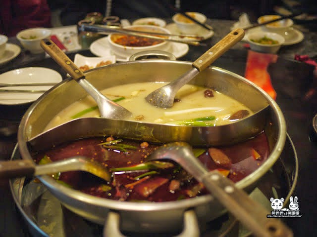 火鍋湯頭的部份是白紅鍋,紅的是辣,可依喜好決定辣度,鴨血可無限加,但其他菜則要單點。