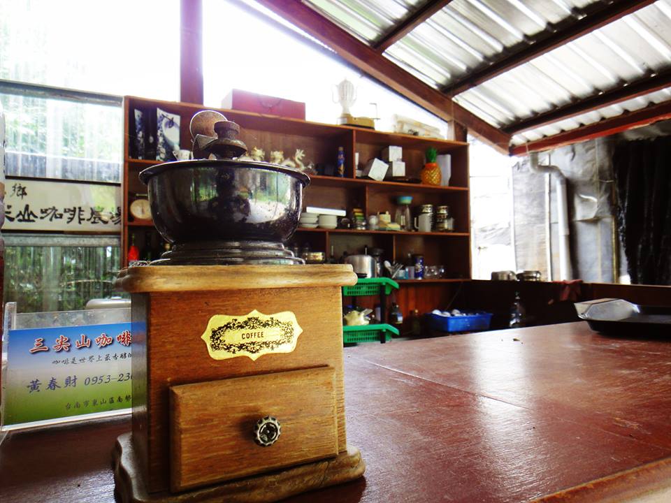 這其實是根據山的名字來的。這裡的山從仙公廟的最左邊算來依序是一尖、二尖、三尖山,因為們的店開在三尖山的山腳下,引用的灌溉水是來自三尖山山脈的水源地,所以我們這家店才會命名為三尖山咖啡。