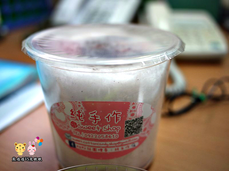 每一杯棉花糖上都貼有店家的相關資訊,上網爬了他的粉絲團後才發現,原來結婚的新人有想要貼上的貼紙,他們這邊也可以協助的。