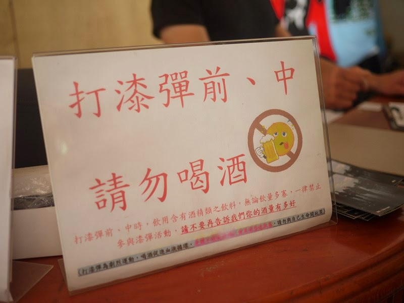 這邊要特別注意的是,打漆彈前是不可以喝酒的!等這些都確定好後,老闆就會依人數,要求大家著裝、選槍並進行行前說明與教學。