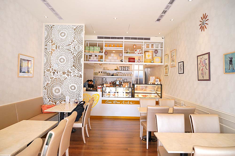 這裡除了賣法式甜點外,冰淇淋也是這間店的重點,所以門口有一個明顯的冰淇淋造型招牌,但整體來說,色系上還是屬於低調不顯眼的。