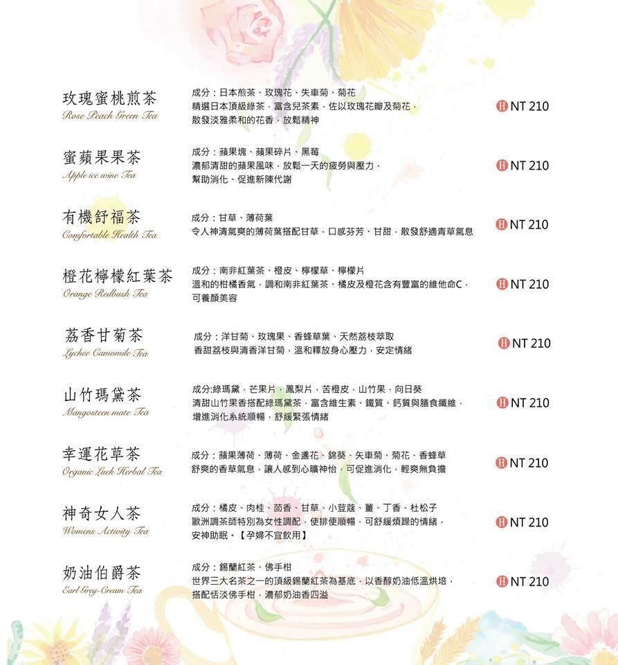 這是菜單,除了架上的甜點外,有些飲料、花草茶都可以在這邊直接點。