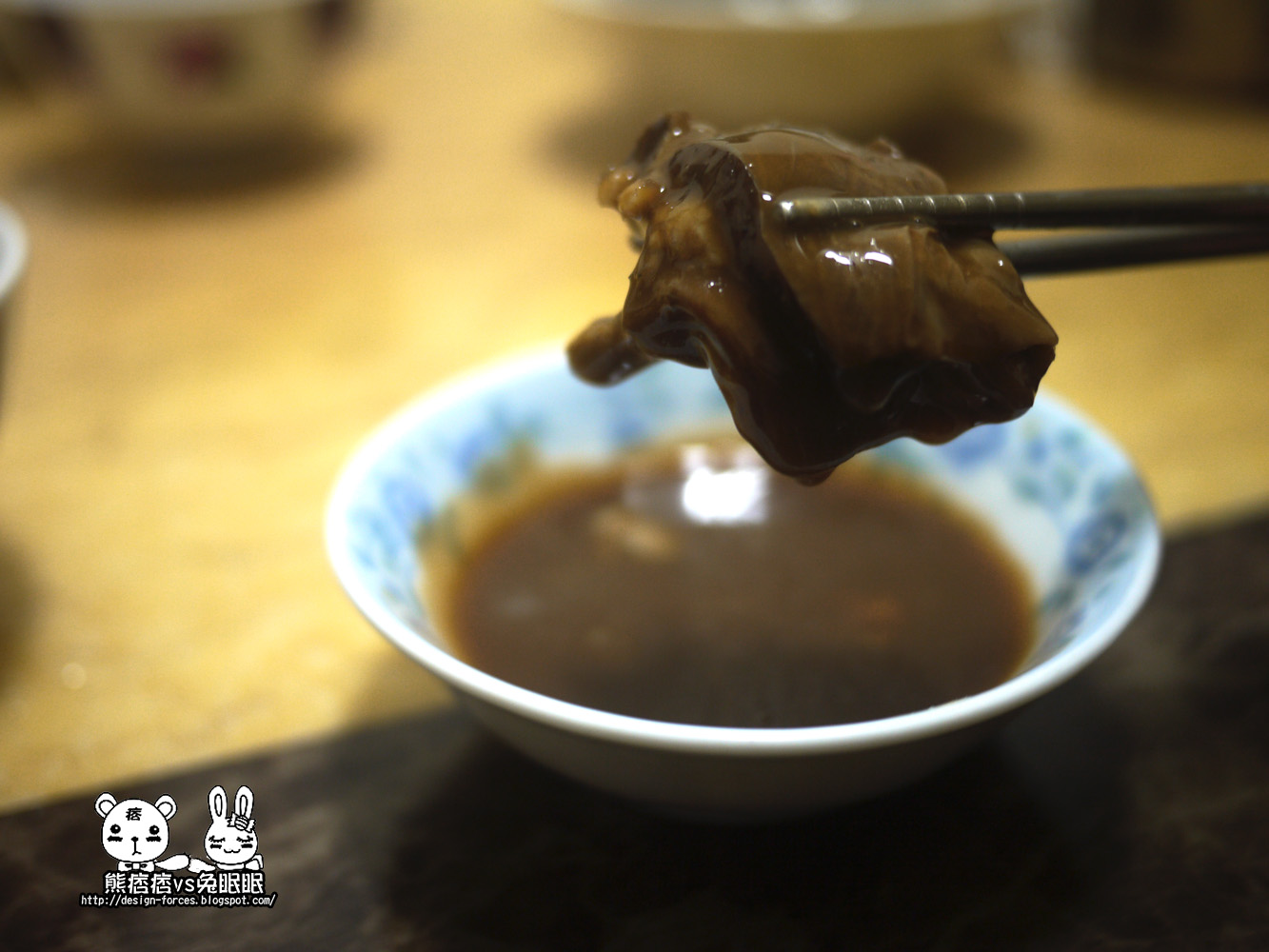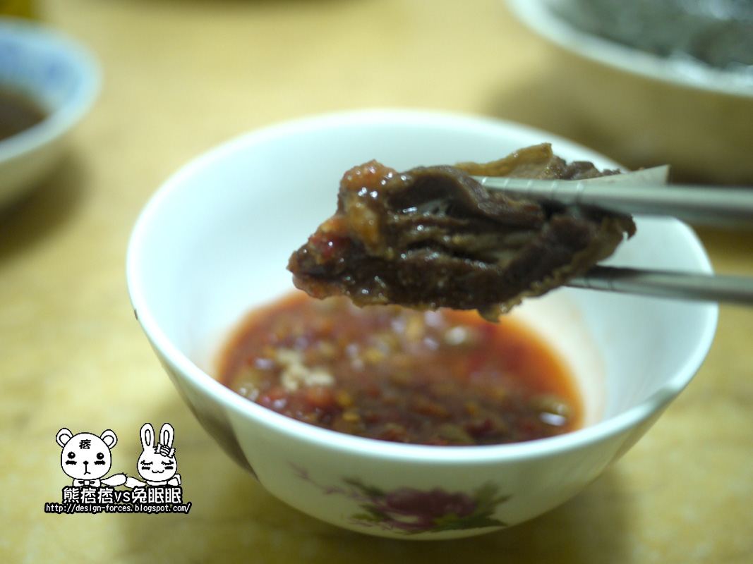 上面兩張是沾醬吃的樣子,坦白說,熊痞痞剛喝完太妃糖咖啡…現在整個味覺都是甜的…已經有點忘記羊肉沾醬的味道了,只記得第一張的辣椒不會很辣,第二張的醬料有些甜甜的樣子,最後這兩個醬料,都被熊痞痞拿去做蛋餅醬XD,以上大概是這次DIY喜美羊肉爐的心得。