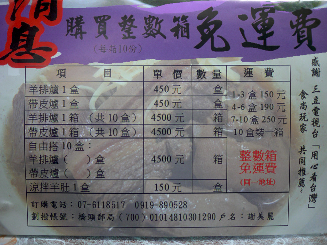 盒子背面有兩張文宣品,看到裡頭的介紹,才知道這家店竟然有被食尚玩家介紹過,不然一開始熊痞痞對這品牌的羊肉爐感覺很陌生,一時好奇的上網查了資料,原來這家店被民眾稱為【巷子裡的秘密美食】,據說要在地人才知道怎麼走,外地人很常會迷路,但因熊痞痞沒去過,對於這點就不太清楚了。