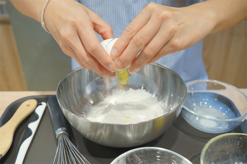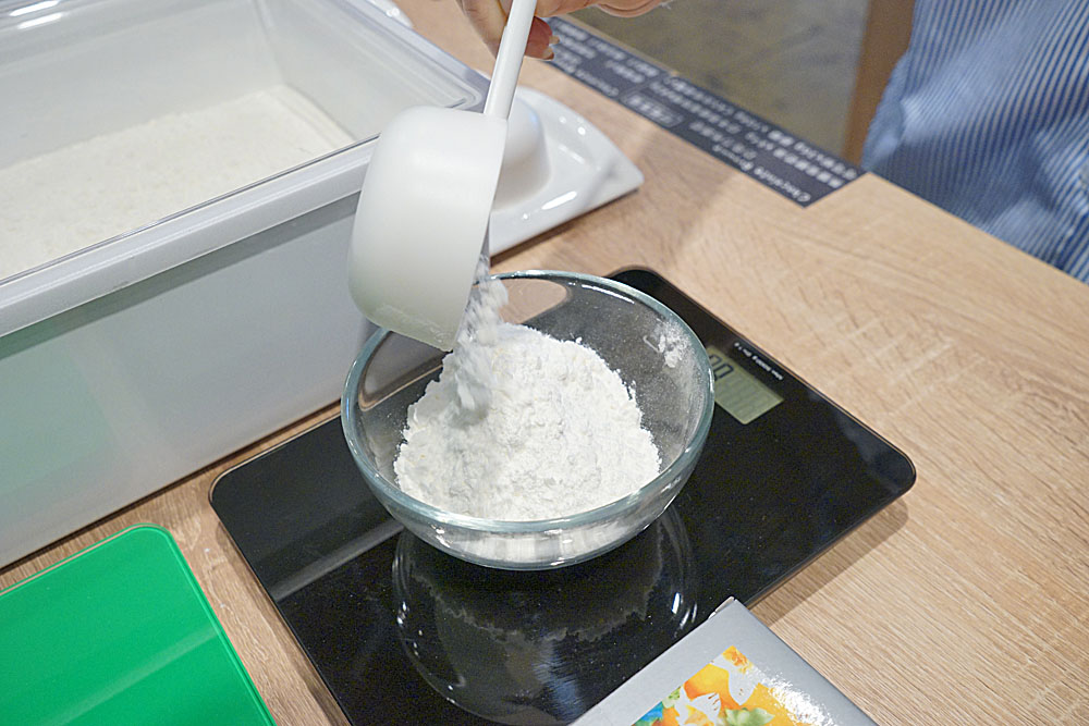 瞧瞧!我們這新手也做得有模有樣吧!不一會時間就把麵糊攪得很漂亮呢。