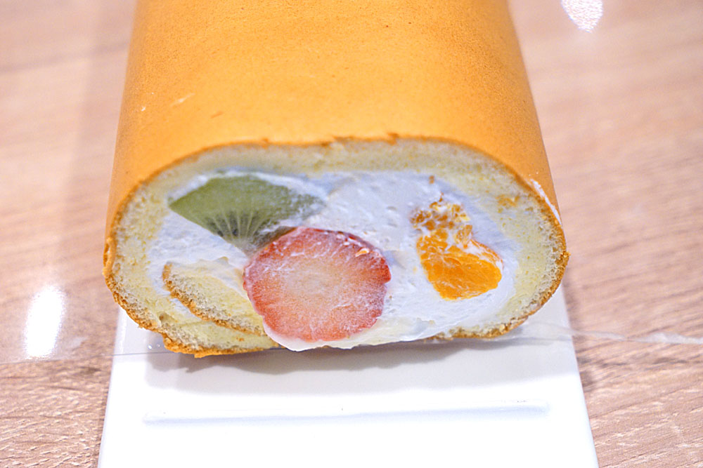 這重點除了水果新鮮外,草莓應該有特別挑選過的,甜度不錯也保有一些水感,而不是放很久已經乾乾的那種,白色的是用十勝生乳,吃起來並不膩,柔滑順口是我對這生乳捲內餡的第一印象。