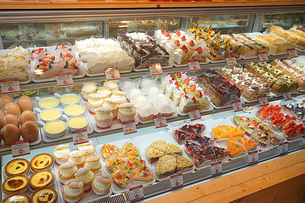 每一樣看起來都好好吃,招牌的生乳捲也是一整排的耶!底下還有不少的蛋糕可以選購。