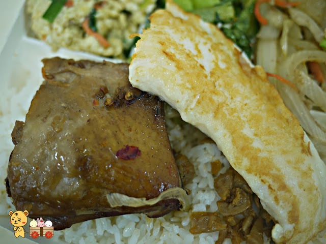 他的配菜跟飯都是採用分離裝盒的處理方式,所以飯粒吃起來也更加蓬鬆有味,粒粒分明,而且普通的菜色,跟其他便當店相比,算是清爽許多,不會太油!
