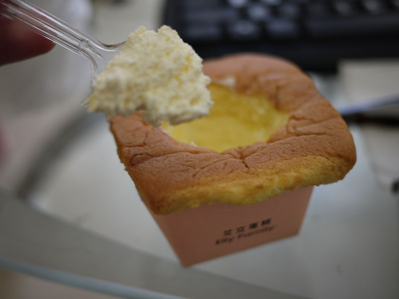 第一次吃到艾立蛋糕的牛奶戚風,讓熊有一種好好玩的感覺,蛋糕竟然是用挖的吃耶(熊第一次吃到這樣的)?據說這家在新竹很有名氣,熊過年時才把前一篇文章巧克力的文章發布到粉絲團,就吸引了超過五百位朋友點閱!真是有點給他誇張。